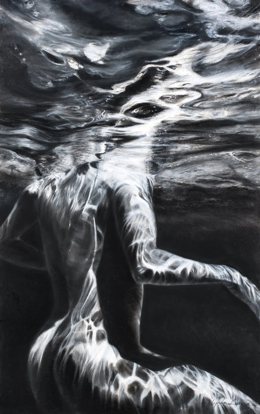 Pachelbel, 50" x 36" charcoal, pastel, graphite, on 100% cotton rag